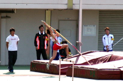 | ▲女子棒高跳を制した清水智美(2年)の跳躍 |