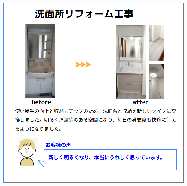 水まわり改修工事 水まわり改修工事 キッチン、お風呂、トイレ、洗面台など、毎日使う場所こそ快適に!古くなった設備の交換から、使い勝手を良くするリフォームまで安心•清潔•便利な水まわり空間をご提案します。