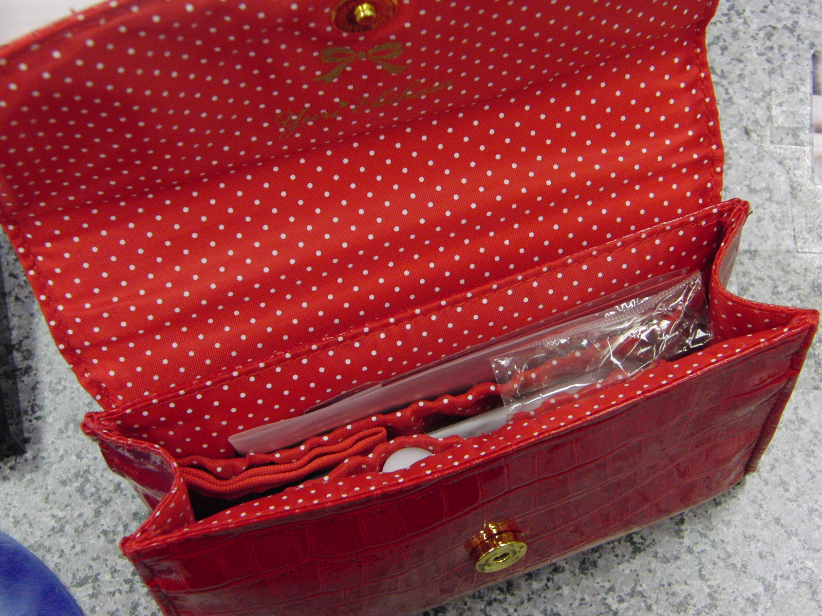 ミラー、あぶらとり紙、化粧下地の特製サンプル、スポンジパフが入っています。