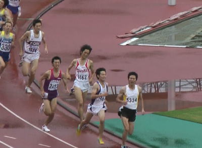 ▲1500m決勝。ラストの直線の競り合い。右から3番目が松岡太嗣(2年)